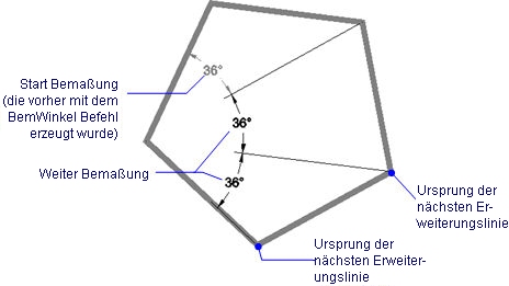 Führt eine lineare Bemaßung und eine Winkelbemaßung vom Endpunkt der vorherigen Bemaßung weiter.