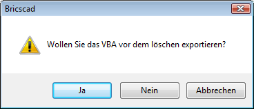 Zeigt das Dialogfenster BricsCAD VBA Makro Ausführen an: