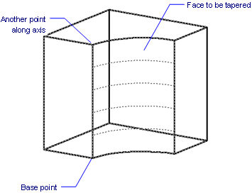 Tapers the selected face; prompts you: Select faces: Remove/Undo/ALL - choose the face(s) to change. Select faces: Remove/Undo/ALL - press Enter to continue.