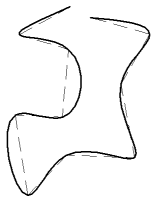 The Fit or Spline options of the Edit Polyline tool convert a multi-segment polyline into a smooth curve. The Fit option creates a smooth curve connecting all the vertices. The Spline option computes a smooth curve that is pulled toward the vertices but passes through only the first and last vertices.