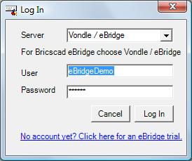 However, eBridge starts where eTransmit ends. With eBridge, Bricscad connects to Vondle™. eBridge and Vondle allow to manage, view, share, log all file versions of a CAD project and much more. eBridge connects automatically with the Vondle servers and uploads the selected files. Files already on the server are checked automatically on modifications.