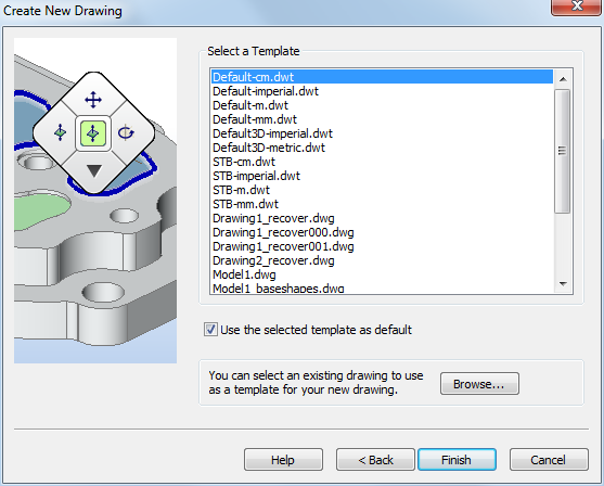 Choose a template file. Optionally check the Use the selected template as default option. Then click Finish. STB is short for "style table," which refers to template drawings with plot styles. |
