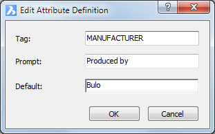 When you choose attribute definition text (created by the AttDef command), displays the Edit Attribute Definition dialog box: