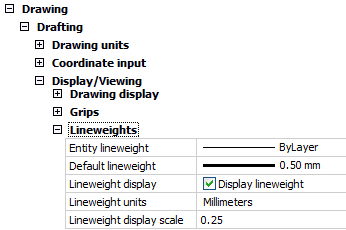 Specifies the default lineweight for all new drawings; choose a preset lineweight from the droplist. |