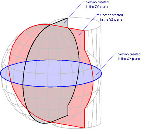 Creates a section parallel to the x,y plane; prompts you: Specify a point on the XY-plane - pick a point to define the height of the section above or below the x,y plane. |