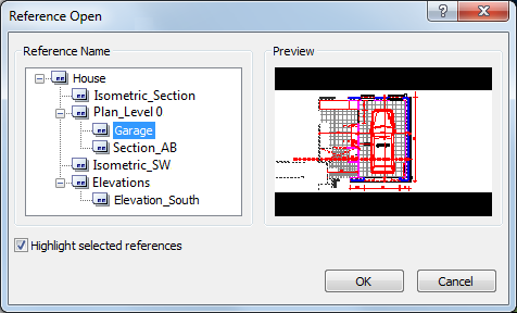If the selected externally-referenced drawing contains nested references a dialog box displays to let you choose the drawing to be opened: