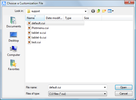 You can load an IntelliCAD menu file if you select MNU files (*.mnu;*.mns) in the Files of Type list box of the Choose a Customization file dialog in the Load main CUI file , Load partial CUI file and Manage Customization Groups procedures. The menu file will be converted to a CUI file automatically. |