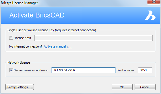 If your computer connects to the license server through a proxy server, click the Proxy Settings... button to configure the proxy settings for a network license.