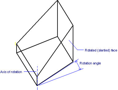 Slants the selected face about an axis; prompts you: Select faces: Remove/Undo/ALL - choose the face(s) to change. Select faces: Remove/Undo/ALL - press Enter to continue.