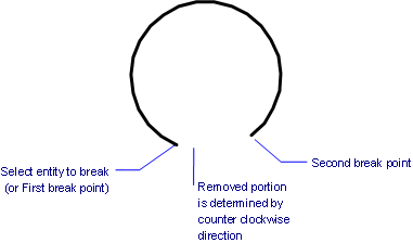 Selects the entity to break; only one entity can be selected. The pick point is also the first break point, unless you use the First break point option. |