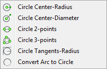 This command also draws circles by two points, three points, and by tangent, tangent, and radius.