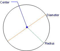 Specifies the radius of the circle; prompts you: Radius of circle - enter a distance, coordinates, or pick a point. |