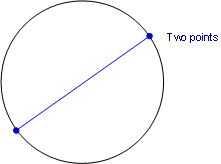Defines the circle by two points on its circumference; prompts you: First point on diameter - enter coordinates, or pick a point. Second point on diameter - enter coordinates, or pick another point. The abbreviation for this option is 2P. |