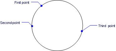 Defines the circle by three points on its circumference; prompts you: First point on circle - enter coordinates, or pick a point. Second point - enter coordinates, or pick another point. Third point - enter coordinates, or pick another point. The abbreviation for this option is 3P. |