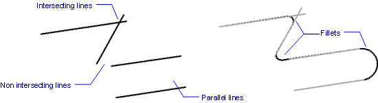 Fillets can be applied to intersecting, non-intersecting, and parallel lines.
