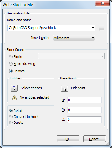 -WBlock - writes blocks and other drawing parts to files on disk through the command bar.