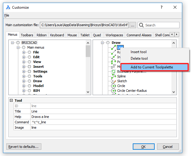 - Right click and choose Add to Current Tool Palette in the context