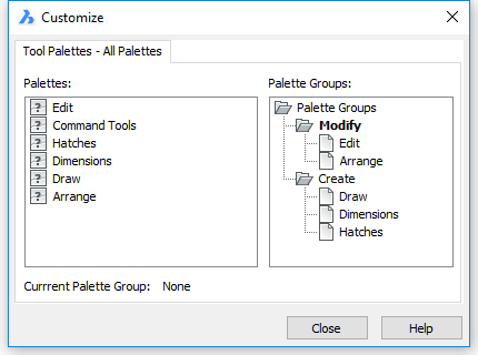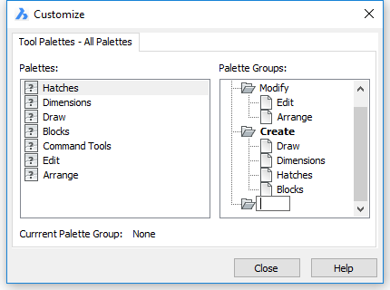 - Right click tool palette tab and choose