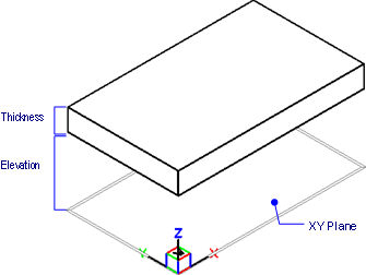 Specifies the elevation; enter a negative value for a negative elevation. The elevation is reported on the status bar as the z coordinate. The elevation is the height of the xy plane in the z direction. |