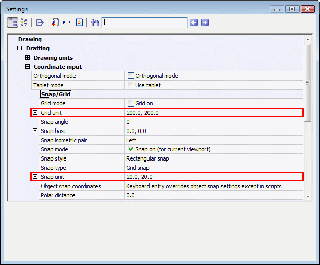 Under Drafting, expand Coordinate Input and Snap/Grid.