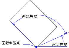 新しい基点角度を指定します;プロンプト: 基点角度 - 基点角度を指定します。 新規角度 - 図形を回転する角度を指定します。 このコマンドは、X軸に該当する図形を正常に回転します。 このオプションによって、始点を異なる角度に定義することができます。