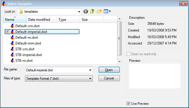 選取樣板的選項,請參考New 指令。