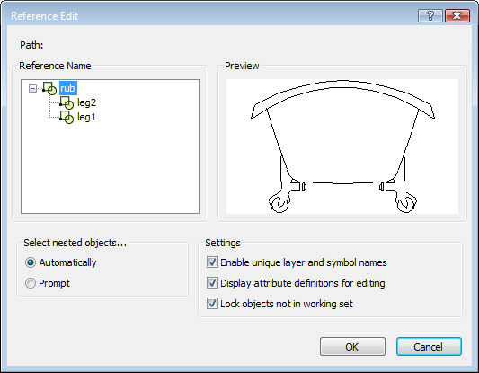 選取要編輯的參考。 點選單一圖塊或外部參考。 同一時間只可編輯一個參考。 |