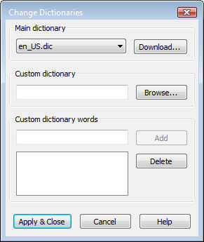 變更拼字檢查使用的字典;會顯示 變更字典 對話方塊。 |